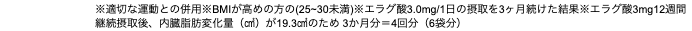 ※適切な運動との併用※BMIが高めの方の(25~30未満)※エラグ酸3.0mg/1日を12週間摂取した結果